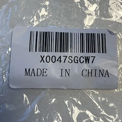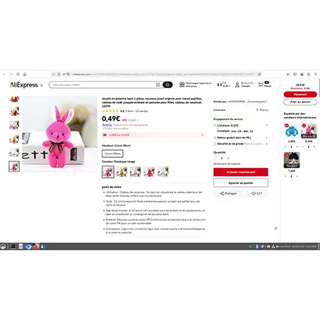 Ensemble de deux peluches roses en peluche en forme de lapins avec un nœud papillon brun et une chaîne à billes en métal attachée à une boucle de tissu blanc entre ses oreilles. Produit vendu en ligne, notamment via AliExpress (identifiant unique du produit: 1005003409385730).