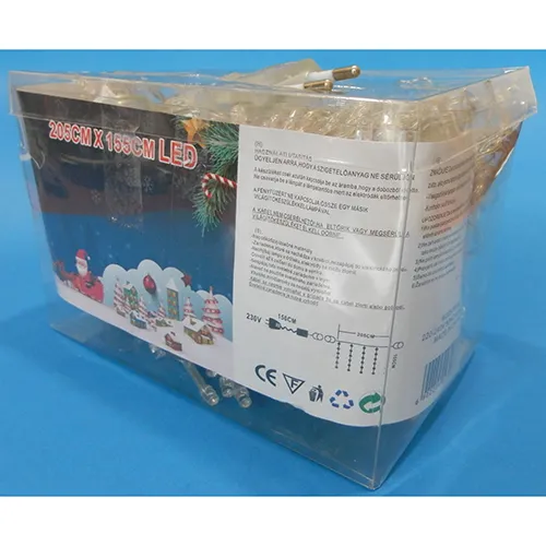 Chaîne d’éclairage décoratif extensible, 205cm x 155cm, en forme de rideau. Données techniques: 220-240 V; 50Hz/60Hz; 13 W, classe 0.