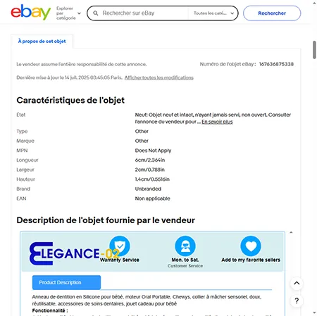 Teether en forme de brique de construction de jouet avec un cordon et des pièces détachables. Produit vendu en ligne, notamment via eBay (identifer unique: 167636875338).