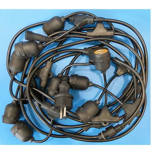 Chaîne d’éclairage extensible décorative avec coupleur d’appareil détachable, contenant 10 pièces, porte-lampe E27 et 5 mètres de long. 16A, 250V~ IP4.