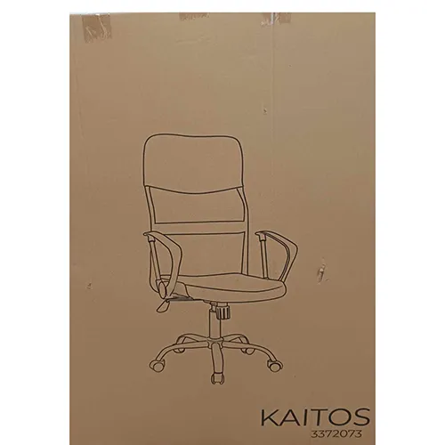 Chaise de bureau noire avec accoudoirs réglables, un siège en textile et un appui-tête recouvert de cuirette noire. Le cadre de la chaise est en plastique noir combiné avec des accessoires chromés. Produit vendu en ligne, notamment via merkurymarket.sk.