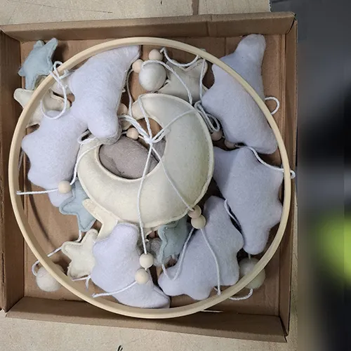 Berceau mobile avec des peluches et un cadre en bois. Produit vendu en ligne, notamment via Shein avec numéro d’identification: sl25011484120052748.