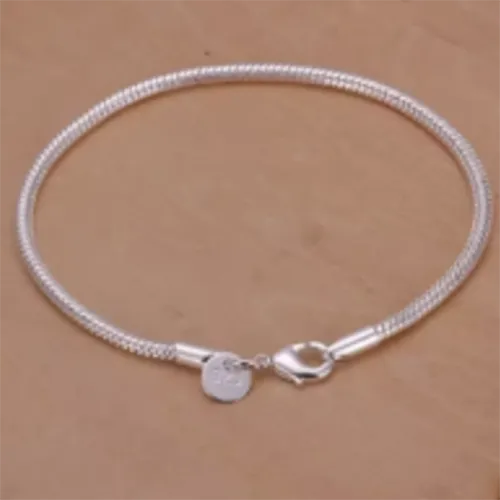 Bracelet à chaîne de couleur argentée avec serrure. Produit vendu en ligne, notamment via AliExpress.