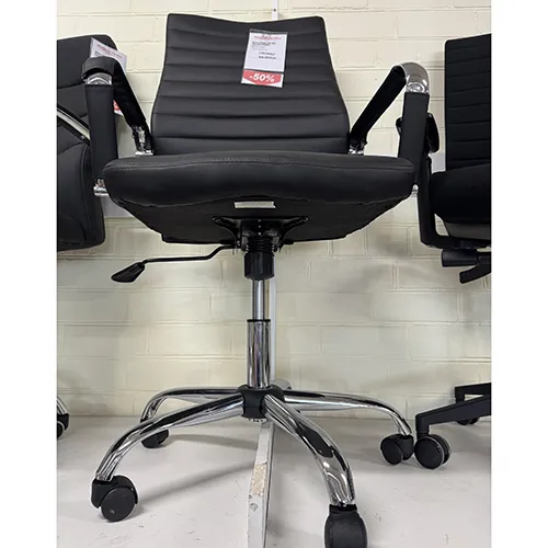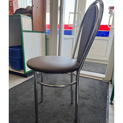 Chaise de bureau à usage domestique avec siège souple, dossier et accoudoirs. La base de la chaise est en métal, en forme d’étoile avec des roues en plastique de 50 mm. La chaise dispose d’un réglage de la hauteur du siège, d’une balançoire du dossier, d’un mécanisme de tension d’inclinaison de la chaise et de fonctions de réglage.