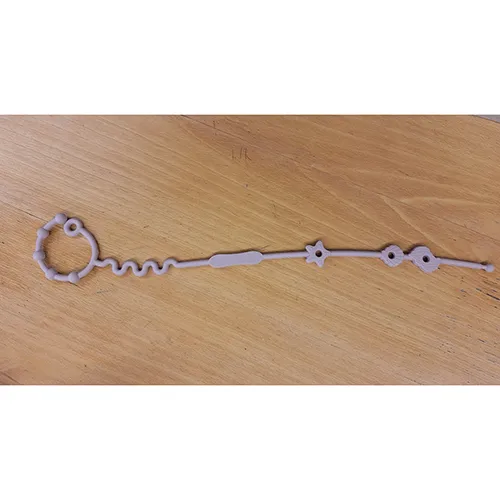 Porte-sucette rose, en silicone. Produit vendu en ligne, notamment via AliExpress (identifiant unique: 1005006996585071).