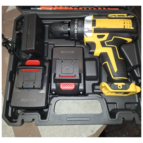 Une perceuse alimentée sans fil avec des batteries lithium-ion remplaçables et rechargeables. Livré dans un étui de transport en plastique noir. Identifiants du produit: 50802391-318, 318/545.